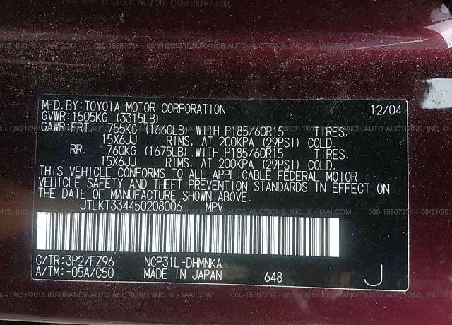 VIN: JTLKT334450208006