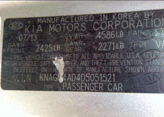 VIN: KNAGM4AD4D5051521