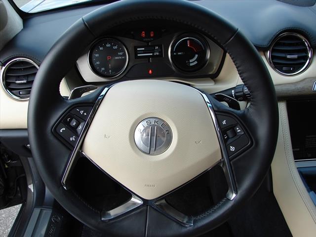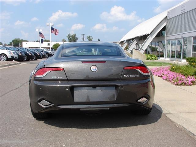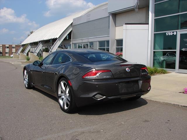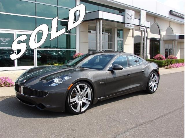 * SOLD * Pre-Owned 2012 Fisker Karma EcoSport is in Earth exterior with Monsoon Tri-Tone interior, with Sunken White Oak Veneer. 5,216 miles, One Owner, Clean Car Fax. Fisker Ever Electric Vehicle Extended Range series hybrid dual powertrain, 20.1 kWh, 336 V lithium-ion battery with Nanophosphate technology, 2.0L turbocharged direct injection 4-cylinder engine with 175kW generator. 10.2 Multifunction Touchscreen / AM, FM, MP3, USB and AUX Audio Inputs, Sirius XM Radio Ready / Dual-Zone Climate Control / 6-Way Power Front Seats / Steering Wheel Mounted Audio and Phone Controls / Keyless Ignition with Push-Button Start / Voice Activated, Handsfree with Turn-By-Turn Directions / Trunk Lid Mounted Standard Rear View Camera.