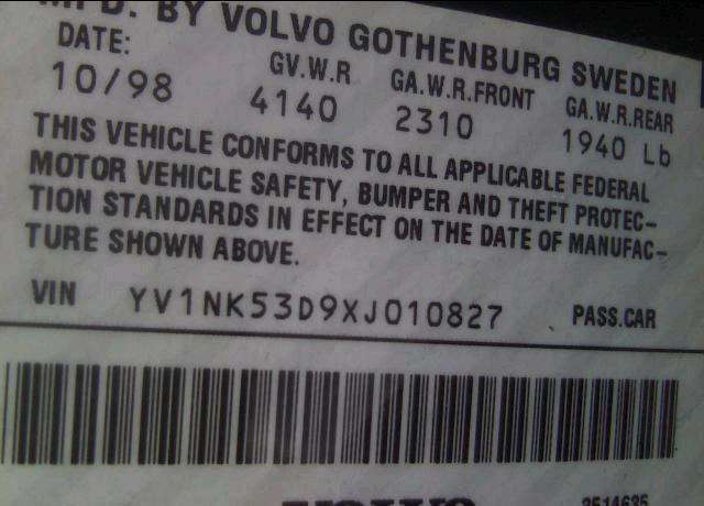 VIN: YV1NK53D9XJ010827